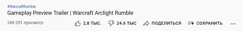 3 мая Blizzard представила два ролика по Warcraft Arclight Rumble — кинематографический трейлер с анонсом игры, а также отдельное видео с элементами геймплея. Каждый набрал по 3-4 тыс. лайков и в десять раз больше дизлайков (по умолчанию они скрыты, но их число можно узнать с помощью специального расширения для браузера).