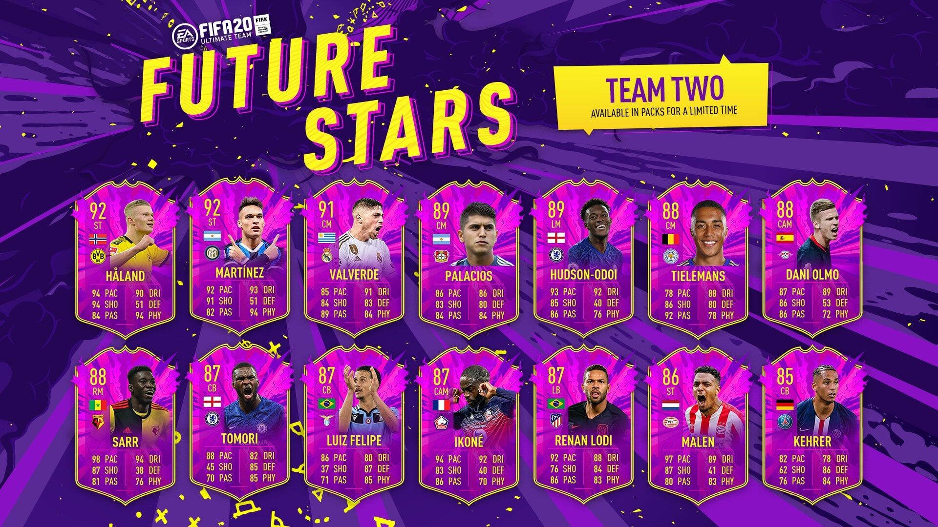Electronic Arts показала состав второй команды будущих звезд в футбольном симуляторе FIFA 20. В него вошли два игрока из «Челси», Федерико Вальверде из ФК «Реал Мадрид» и защитник Луис Фелипе Рамос из «Лацио». Полный состав появился в официальном твиттере издателя.