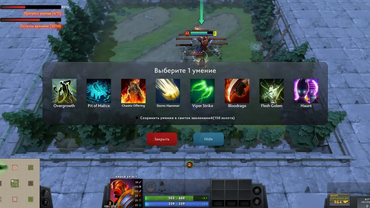 Герои в Dota 1x6 являются аналогами героев из оригинальной Dota 2. Главная особенность – это отличие талантов, предлагаемых герою в виде сфер на протяжении всей игры. Они позволяют изменить механику способностей и улучшить их. Игра происходит на специальной карте, где вам нужно защищать свою базу от крипов на линии и других героев. Если вы с врагом останетесь 1 на 1, то вам предстоит сразиться на дуэли, где определиться победитель.