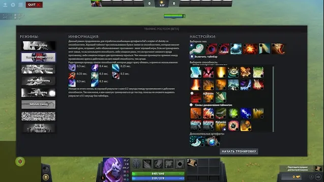 Кратко про игру: Эта кастомка создана для оттачивания уровня игры, в ней вы можете потренировать использование станов в тайминг Eul's Scepter или других способностей. Можно пробовать уворачиваться с помощью Manta Stylе от направленных скилов, можно потренировать свой aim и понимание миникарты.