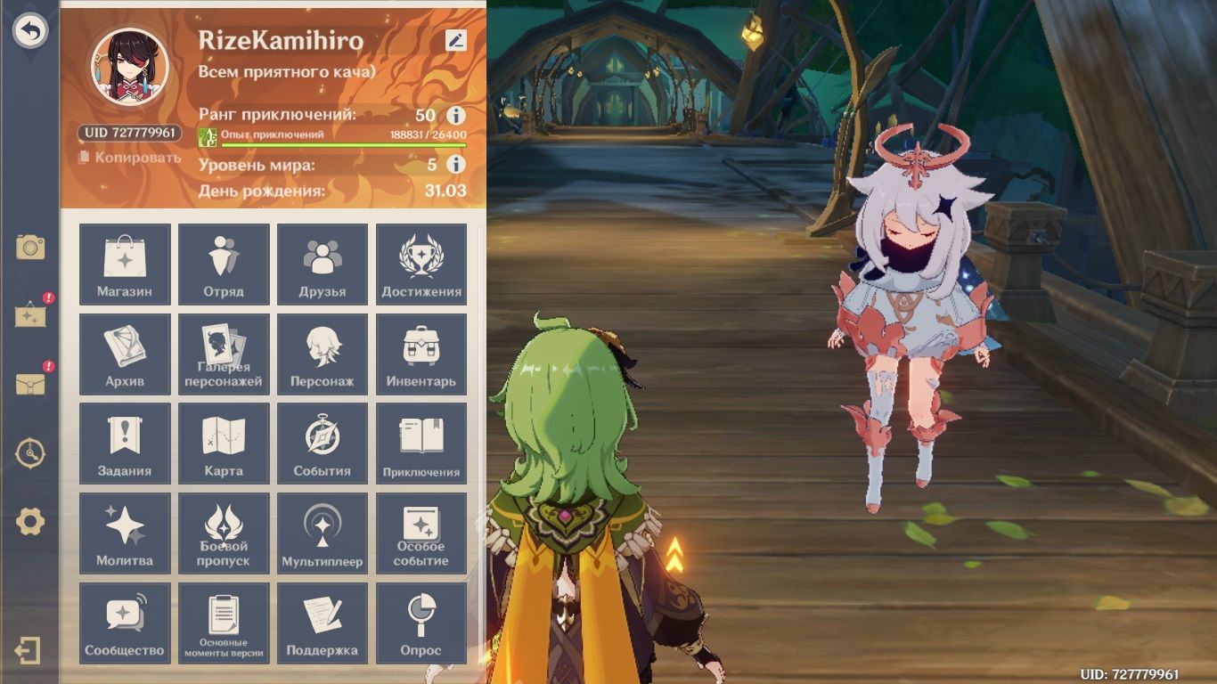 Для начала расскажу о своём прогрессе в игре. Ну привет, меня зовут RizeKamhiro и у меня 50 ранг приключений(апнул бы больше но лень идти в "сад") и играю в Геншин уже больше полтора года.