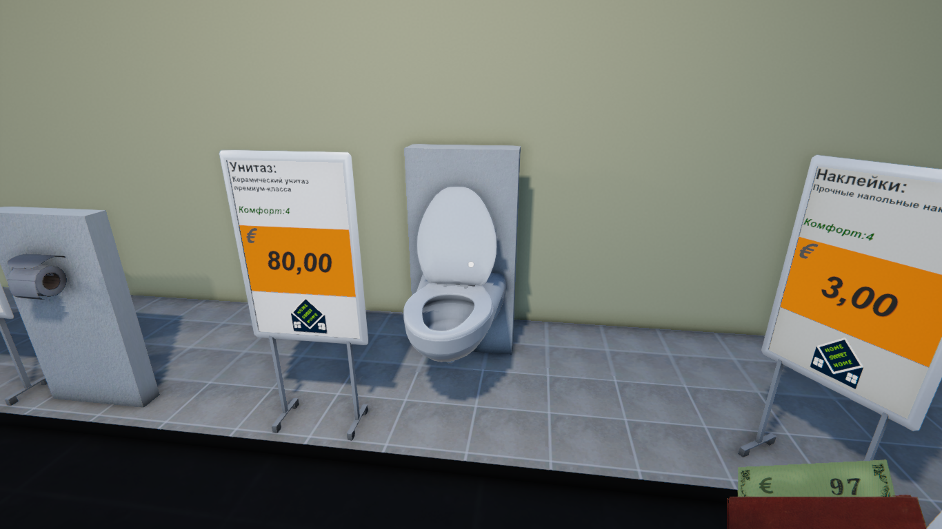 Ну а дальше по геймплею будет следующее: установили туалеты, сделали уютным помещение, дождались клиентов, они высрались, взяли с них деньги, помыли унитазы, и ждете новых клиентов.