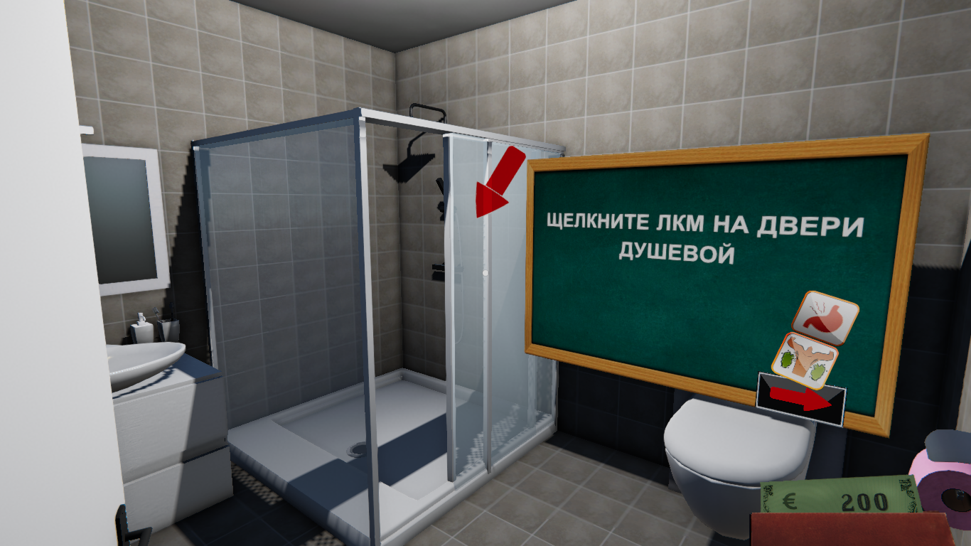 Как раз нужно убирать в самом помещении, где будут размешены первые туалеты. Кстати, чтобы убирать нужно будет ещё сходить в магазин и купить определённые "инструменты", и процесс этот напоминает как в жизни. То есть подошёл, выбрал товар, положил на кассу и оплатил