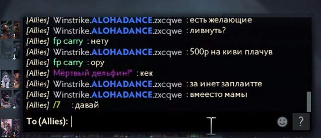 ALOHADANCE и его союзники не захотели играть, когда увидели пик оппонента. В чате Коробкин написал, что перешлет ₽500 на QIWI тому, кто покинет игру. После старта матча он предложил «зароллить за лив», но Treant Protector решил выполнить первоначальную просьбу ALOHADANCE и получить за это оплату.