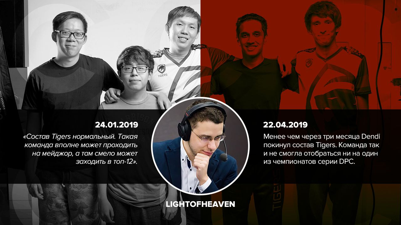 А еще раньше определенные надежды возлагались и на тот самый переход Dendi в Tigers. Дмитрий LighTofHeaveN Куприянов полагал, что коллектив вполне может пробиться в топ-12 мейджора...