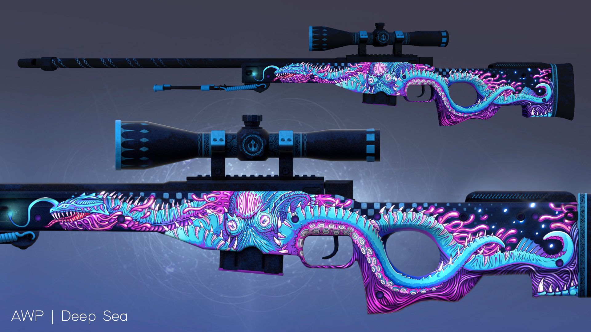 Пользователь Steam KeramDesign разработал скин AWP в морском стиле. Винтовка получила название Deep Sea — «Глубокое море», она доступна в Мастерской магазина. На ней изображен осьминог, который представлен в синем, фиолетовом и розовом тонах.