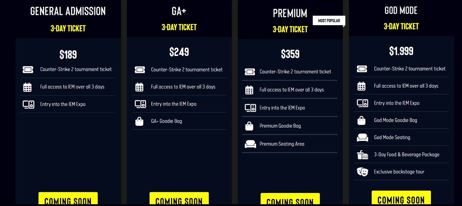 Продажа билетов на LAN-стадию начнётся 22 января, она будет представлена в четырёх вариациях и пройдёт в три волны. Во все виды билетов будет включена трёхдневная проходка на арену, самый дешёвый будет стоить $189, а самый дорогой с VIP-зоной для просмотра — $1 999.