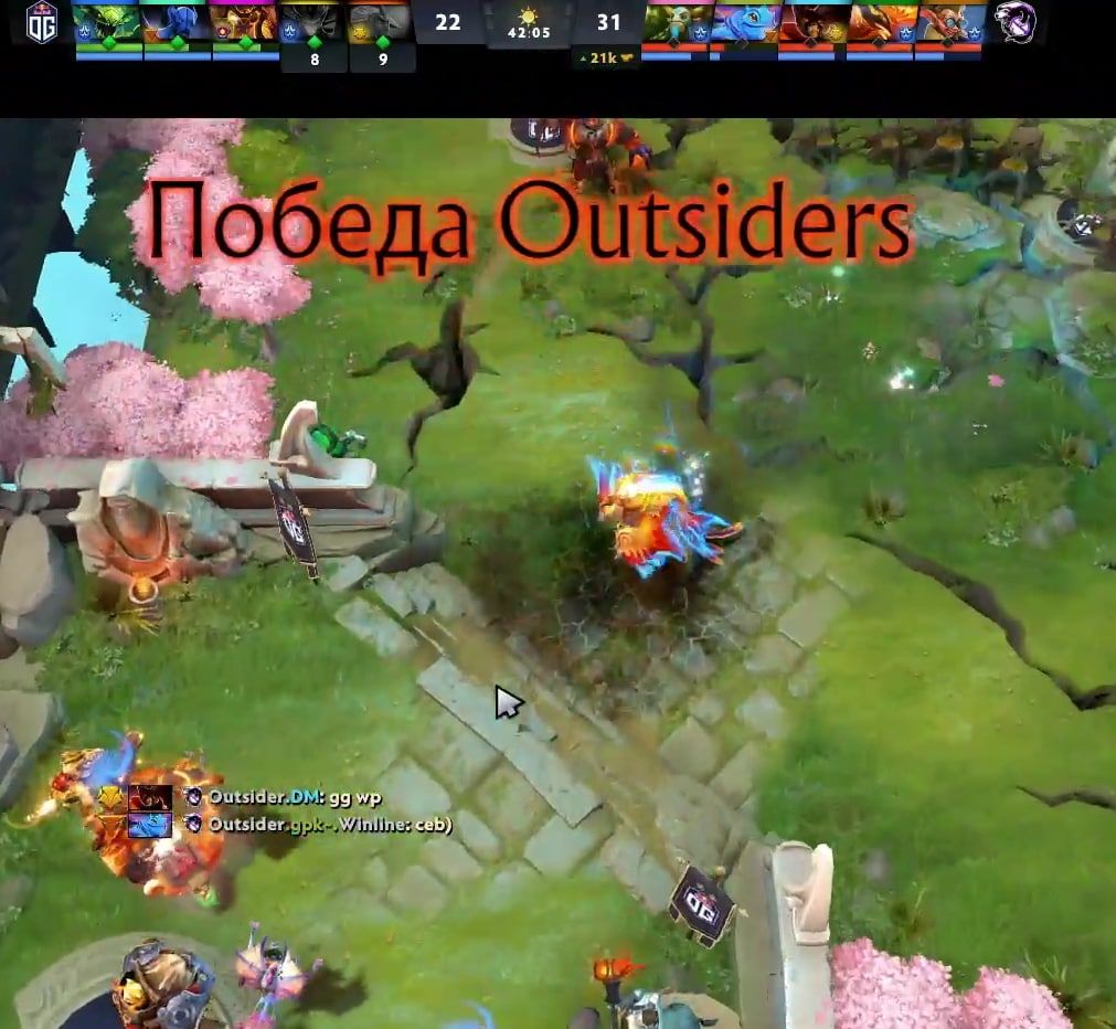 На момент сообщения от Ceb европейский коллектив лидировал во встрече. Некоторое время OG сохраняла преимущество, однако после ряда неудачных драк инициатива перешла к Virtus.pro. На 41-й минуте российская команда убила керри OG без байбека и завершила карту в свою пользу. После победы gpK~ ответил Дебсу, написав в чат «ceb)».