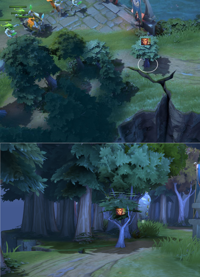 Пользователь reddit Jebaited_ref нашел способ отличить Monkey King под действием способности Mischief от деревьев в лесу. Для этого достаточно перейти в режим Dota 2 от первого лица: дерево, в которое превращается герой, окажется намного меньше. С высоты же оно выглядит идентично остальным.