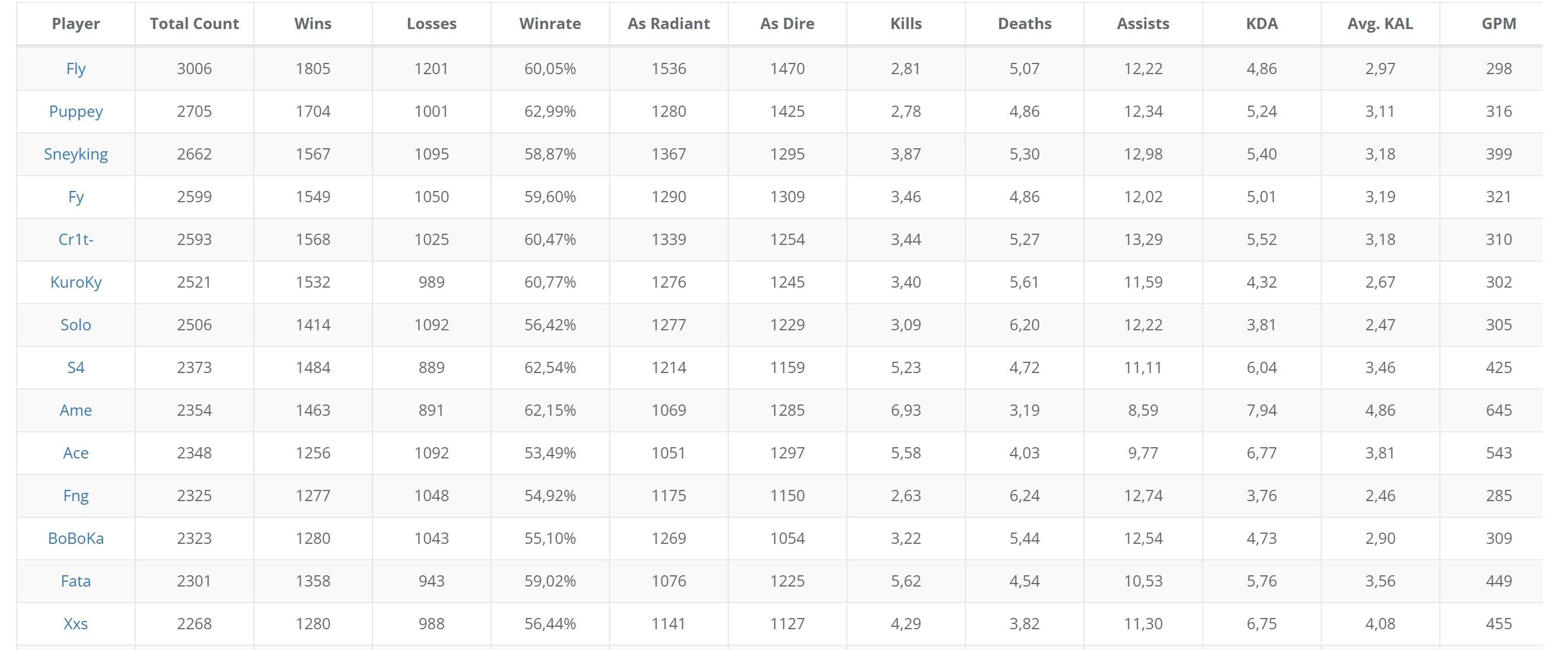 Саппорт Virtus.pro Таль Fly Айзик первым на профессиональной сцене провёл 3 тыс. карт. Информация об этом появилась на сайте DatDota.