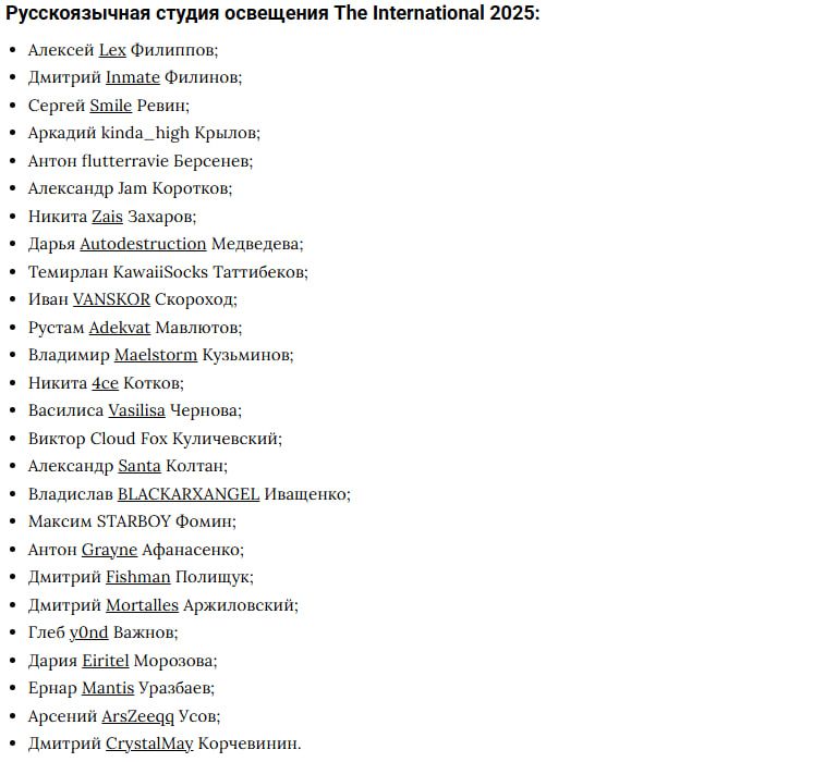 Как вам список русскоязычных кастеров на The International 2025? Довольны ли вы им или хотели бы что-то в нем изменить? Делитесь мнениями в комментариях.