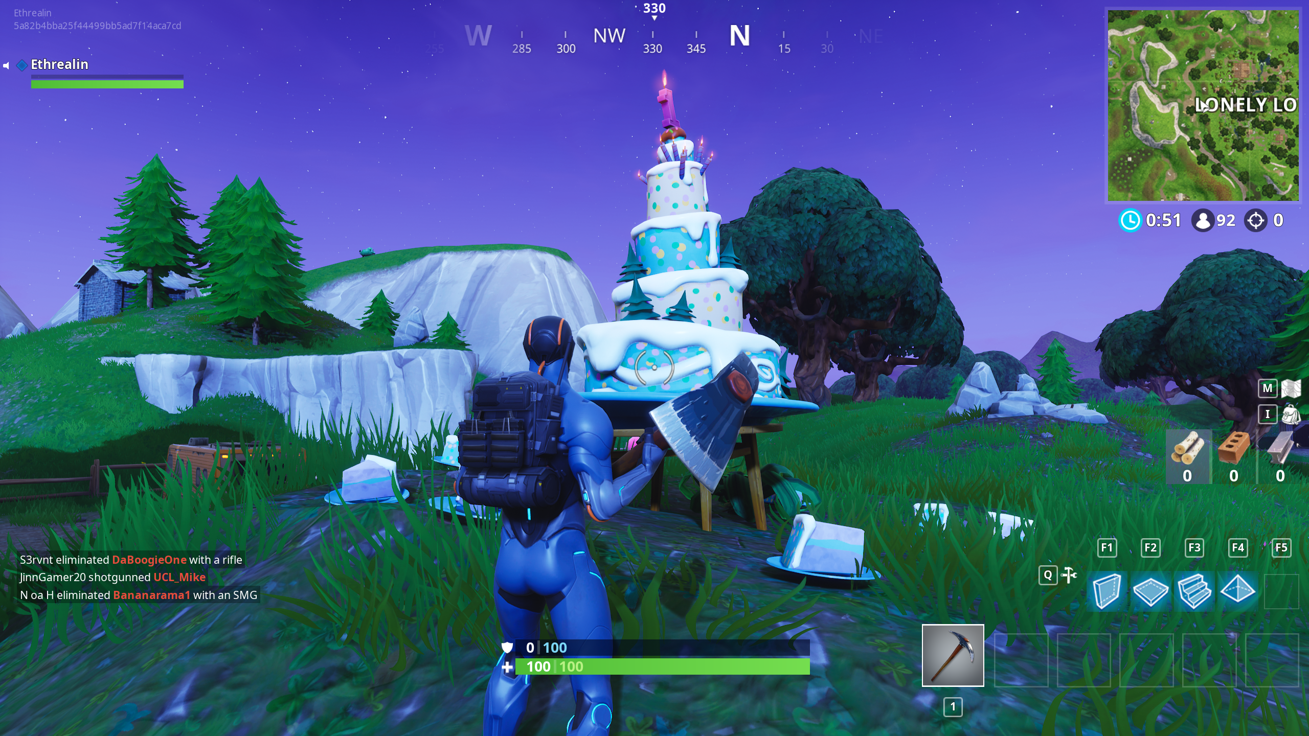 С патчем 5.1 в Fortnite добавили три задания ко дню рождения игры. Квест, за который дают граффити, требует станцевать перед десятью тортами. Показываем, где найти угощения.