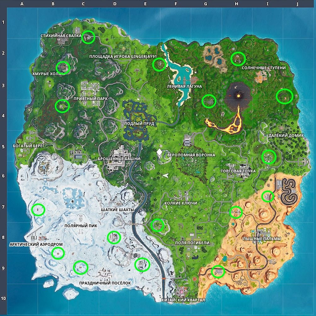С активным стилем игры есть смысл прыгать в популярные зоны — Брошенные башни, Подлый пруд, Колкие ключи или Торговую точку. Обычно туда приземляются сразу несколько человек, и вам будет с кем постреляться в первые минуты. На окраинах карты любят высаживаться пассивные игроки, которые хотят спокойно фармить и искать лут без риска нарваться на соперника.