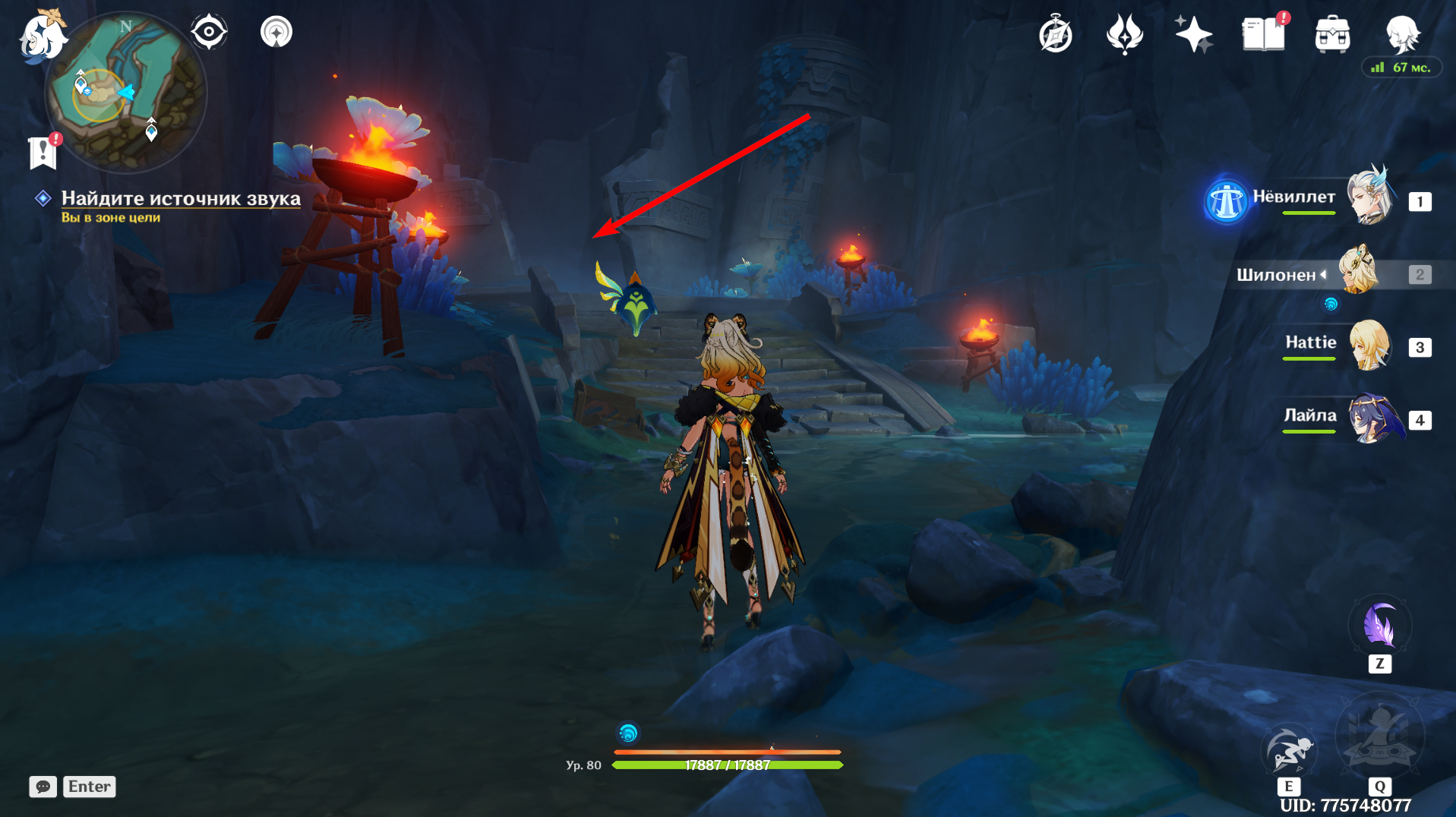 Чтобы начать задание с Кенином необходимо для начала достичь 28-го ранга приключений, открыть территорию Очканатлана и завершить квест «Дорога в небо» из цепочки побочных миссий «Заблудший путник в обители пепла». После выполнения всех условий телепортируйтесь подземную локацию «Ущелье Скрытых течений) и сразу поверните направо. Там вы увидите искомого персонажа. Поговорите с Кенином, но он лишь посоветует уйти из этих мест.