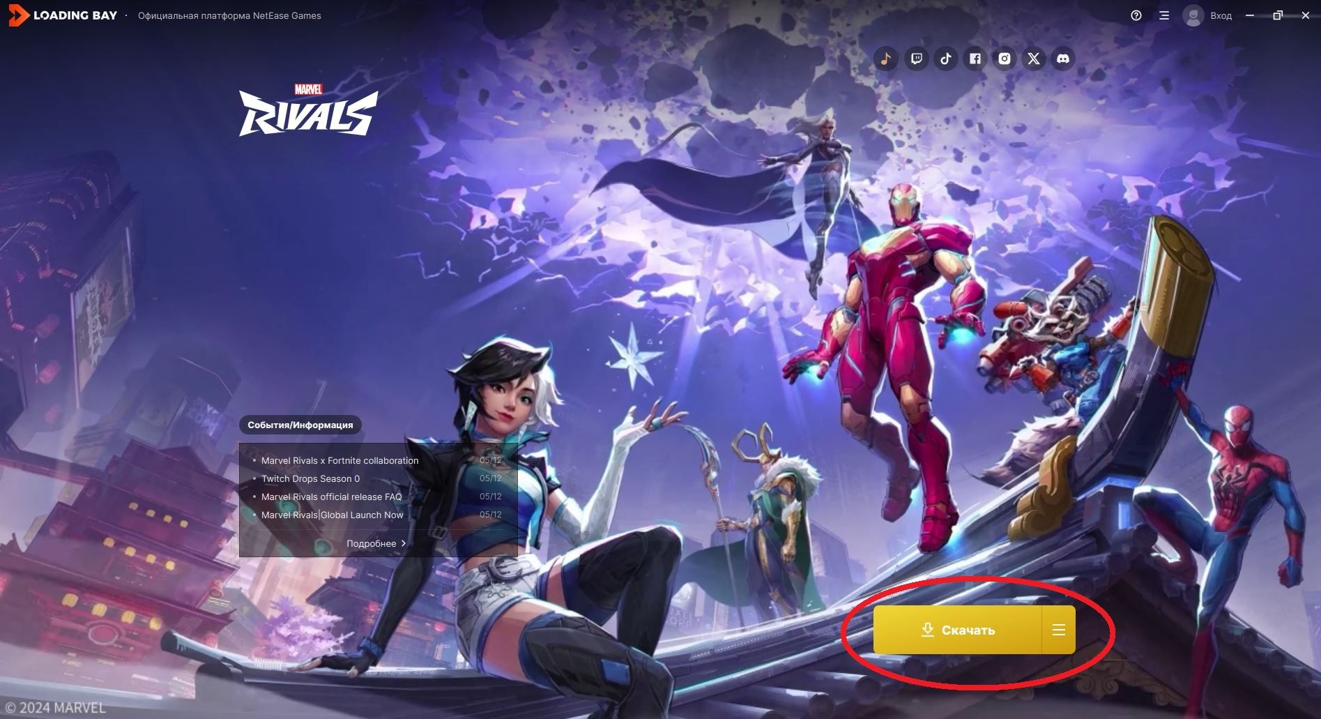 - Жмите кнопку NetEase Games, чтобы скачать официальное приложение-лаунчер Loading Bay от издателя Marvel Rivals.