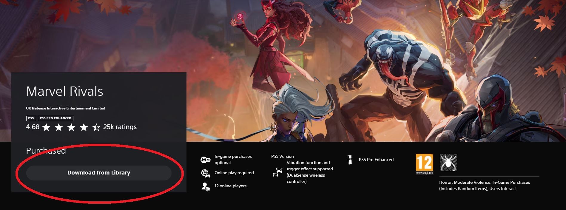 - Авторизуйтесь и ищите в PlayStation Store игру Marvel Rivals.