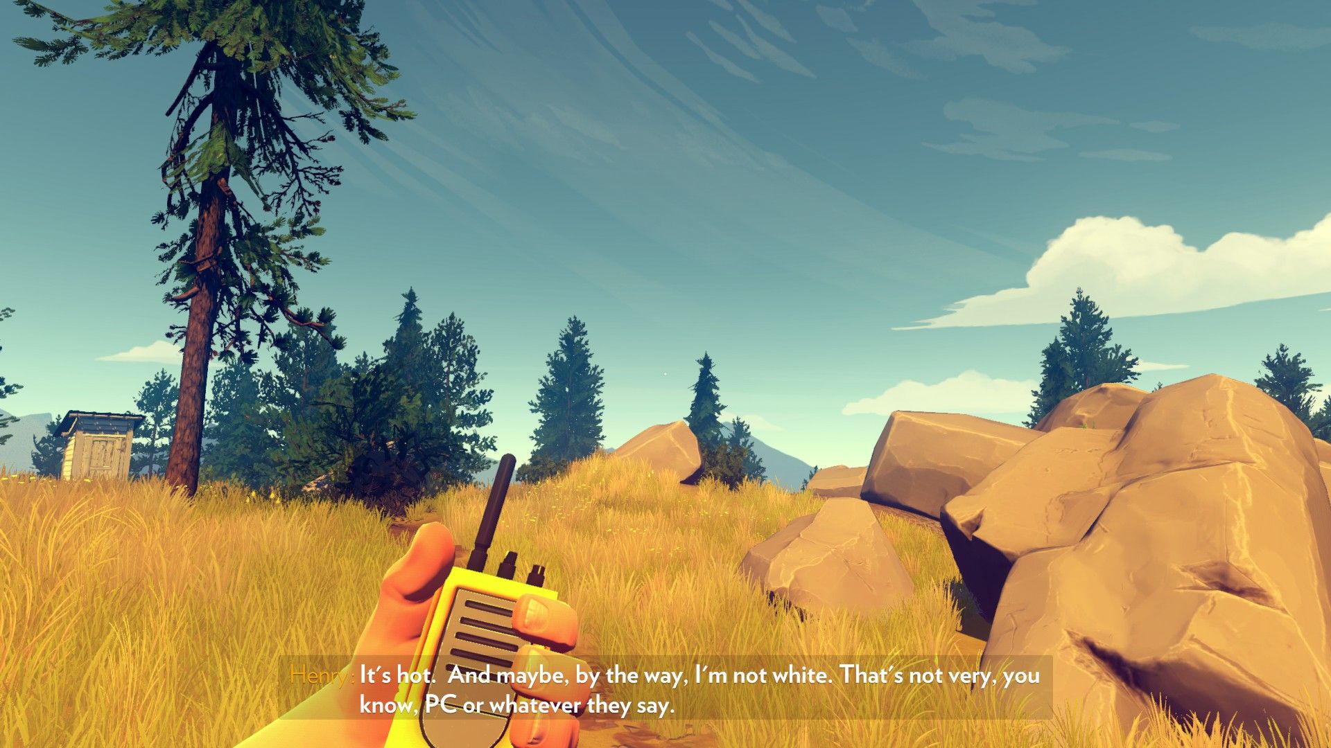 В Firewatch сценаристы решили соединить сразу несколько любопытных повествовательных линий, которые завели игру в неординарное сюжетное и жанровое положение. Вроде бы в итоге получилась обыкновенная бродилка, где не идёт речи о каком-то выживании, дейтинг-симе или борьбе с инопланетянами, но количество намёков и акцентов, уделённых этим темам в истории, явно бьёт все рекорды. Игрок приезжает работать обычным сторожем вышки, но в итоге ввязывается в великую эпопею и мешанину из самых разнообразных событий.
