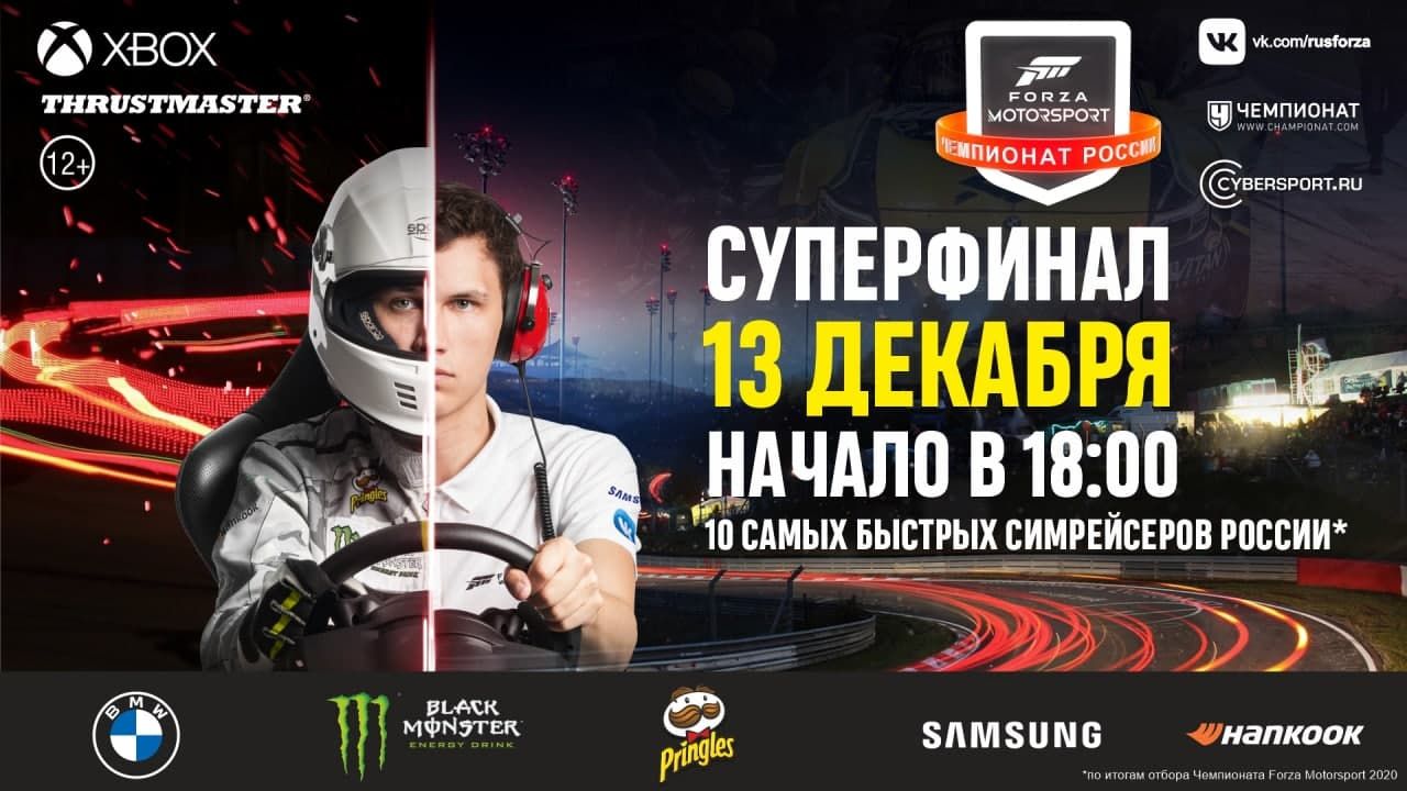 13 декабря в 18:00 мск стартовал гранд-финал всероссийского чемпионата Forza Motorsport 2020. Прямую трансляцию суперфинала можно посмотреть в официальной группе турнира во «ВКонтакте».