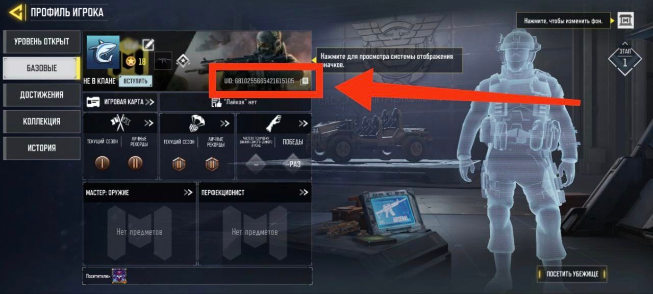 - Под вашим ником находится ваш личный UID — скопируйте его.