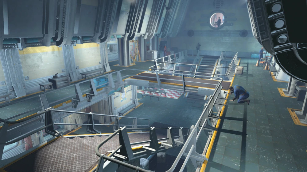 Здесь можно начать с небольшого спойлера. Да, всё опять пошло наперекосяк, поэтому в этом месте снова обнаруживаются гули, радиация и другие прелести суровой франшизной жизни. Как всегда, меняется только причина, и на этот раз ей стал вооружённый конфликт. Кому-то показалось прекрасной идеей посмотреть на взаимодействие людей с кучей пушек, и полученный итог весьма закономерен. Жизнь убежища стала похожа на раунд в Counter-Strike, перед которым люди пытаются достать оружие, а потом начинается пальба.