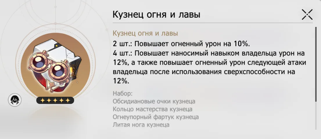 «Стрелок дикой пшеницы», «Пленник мрачной темницы», «Храбрость ветра» / «Вестник, блуждающий в хакерском пространстве» или «Кузнец огня и лавы» — если поставить любой комплект, две части которого дают прибавку к силе атаки, и совместить его с сетом на скорость / огненный урон, то такие комбинации тоже весьма значительно повысят как собственный урон персонажа, так и периодический дамаг по врагам.