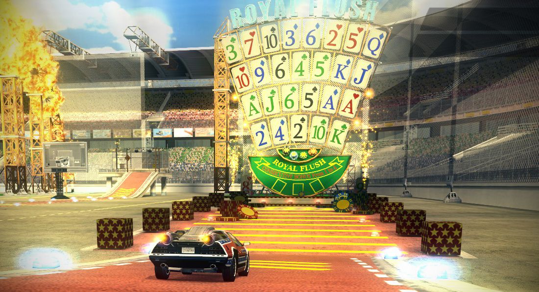 Если вам по душе механика местных разрушений и непрекращающегося хаоса из постоянных случайных столкновений и таранов в моменте, то режим «Дерби» подойдёт как нельзя лучше. Впечатления в нём зависят как от выбранного класса машин, так и от карт. Огромный сферический ринг с большой ямой в центре, позволяющей в нужные моменты использовать её как нычку, ну или влетать со всеми в стиле «куча-мала». Или большая заправка, взрывающаяся по частям от влётов ваших оппонентов и напоминающая больше голливудский фильм, чем старую игру. Для вас найдётся всё. Главное — не забудьте взять огромный пикап вместо гламурного минивэна.