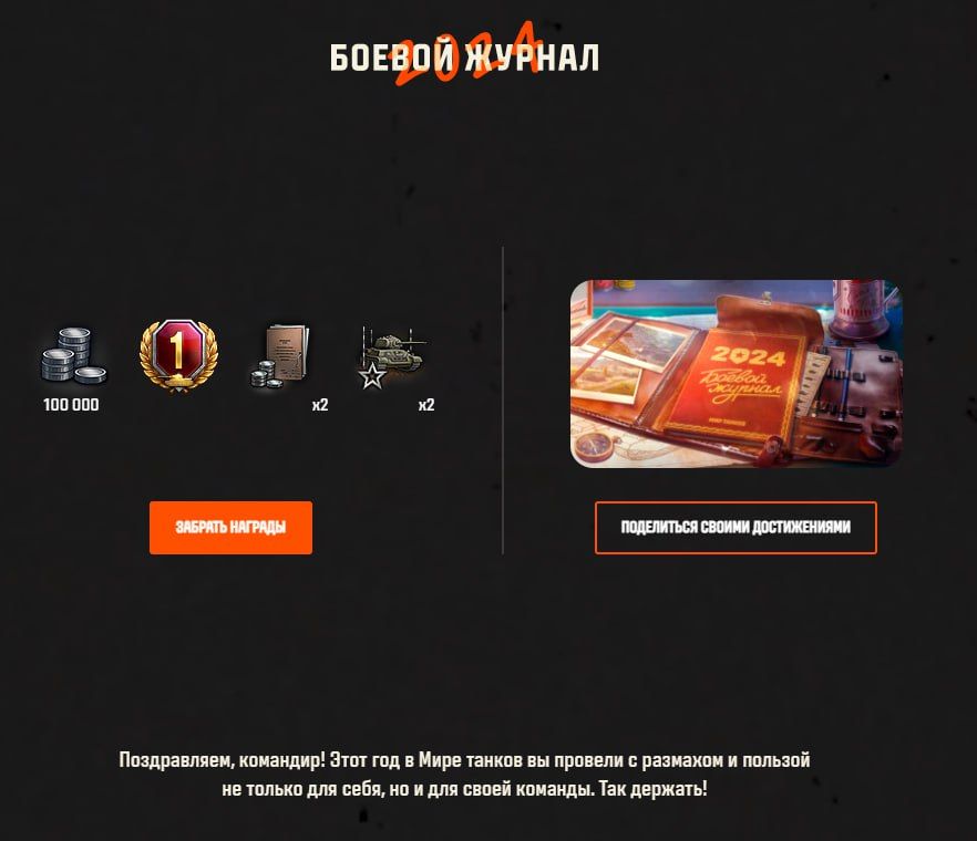 Разработчики «Мира танков» сообщили о том, что в игре станет доступен «Боевой журнал» за 2024 год. После просмотра итогов игроки получат награды. Об этом стало известно из социальных сетей игры.