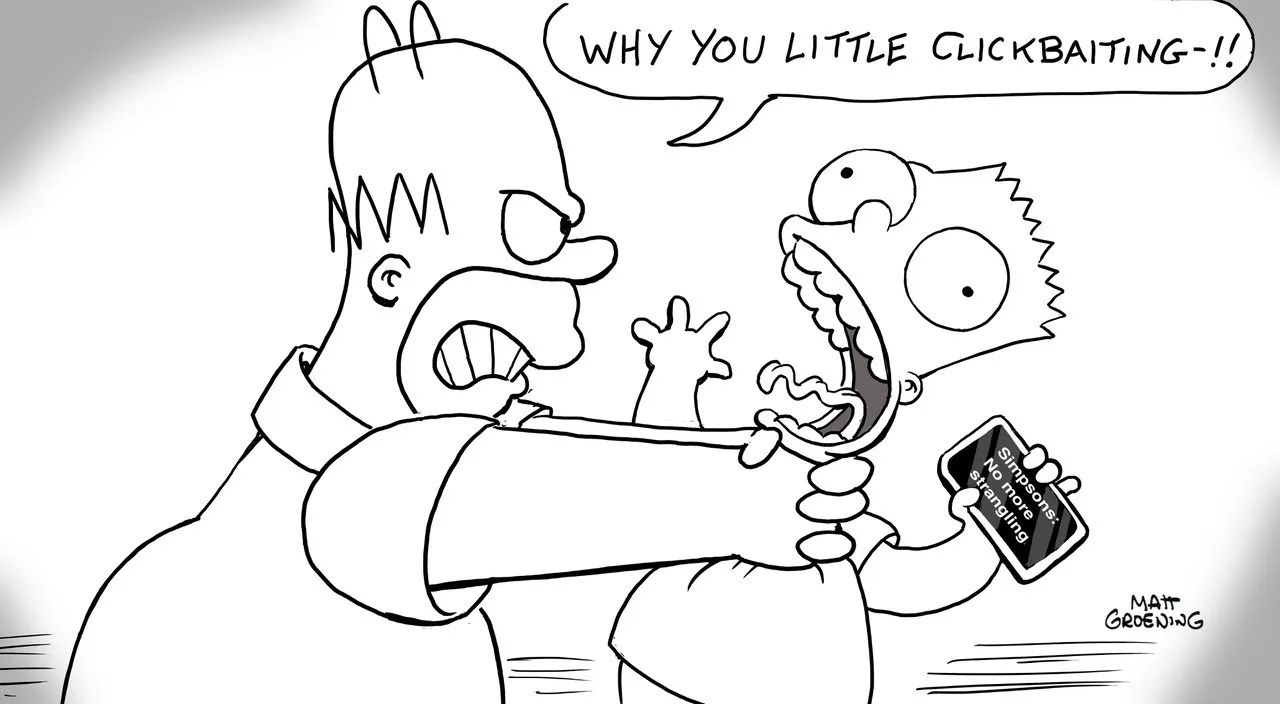 Представители студии прислали журналу картинку, на ней Гомер душит Барта, в телефоне которого напечатано: «В "Симпсонах" больше не будет сцен удушения». Разъяренный отец спрашивает сына: «Зачем ты создаешь кликбейты?»