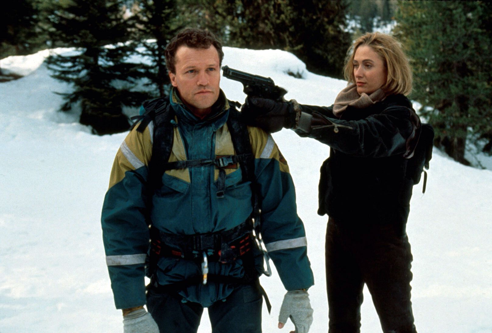 Это боевик 90-х в чистом виде. Злые, жадные бандиты, которые не гнушаются замарать руки — злые просто потому, что злые. А главный герой — именно герой, который и девушку спасёт, и злодеям морду набьёт. Смотрел этот фильм ещё по СТС, но и сегодня прекрасно помню сцену, где Сталлоне съезжает на каком-то бедняге со снежной горы, и тот, изрезанный снежной коркой, умирает. А ещё для меня было удивительно, что Майкл Рукер здесь играет положительного персонажа.
