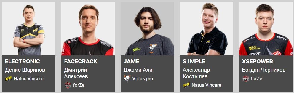 В категории CS:GO среди игроков безоговорочным фаворитом является Александр s1mple Костылев. За второе место идет очень ожесточенная борьба между Денисом electroNic Шариповым и Джами Jame Али. Каждый голос за них может стать решающим!