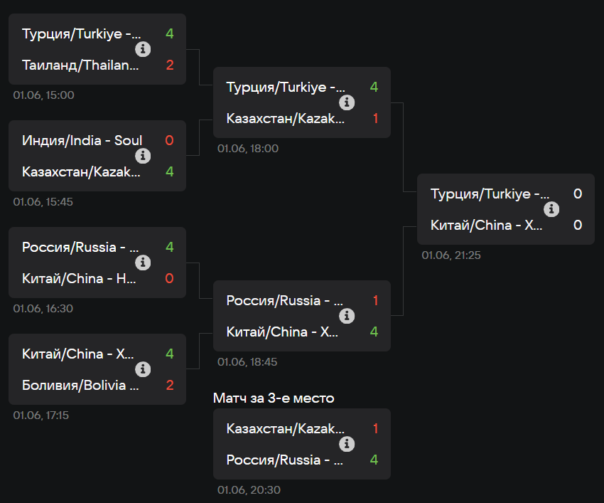 Киберспортсмен Сергей Strog Платов, представляющий Россию на чемпионате стран БРИКС 2025 по Tekken 8, уступил в полуфинале плей-офф турнира XCC из Китая со счетом 1:4. Во втором полуфинале KaizokuLars из Турции обыграл со счетом 4:1 leonsluv из Казахстана.