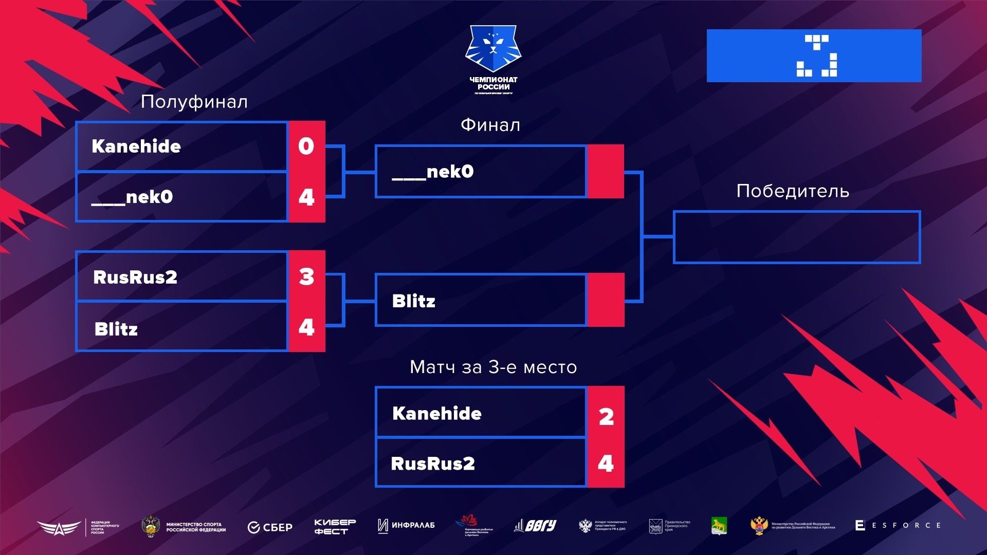 Ранее nek0 (Алтайский Край) и Blitz (Краснодарский Край) победили своих оппонентов и прошли в финал чемпионата, который запланирован на 28 июня, 3:45 мск.